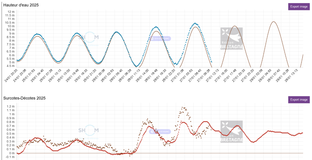 Avec une houle prévue en augmentation et un déplacement de la dépression vers l’est, il est crucial de surveiller l’évolution des niveaux d’eau dans les jours à venir, en particulier lors des marées hautes.